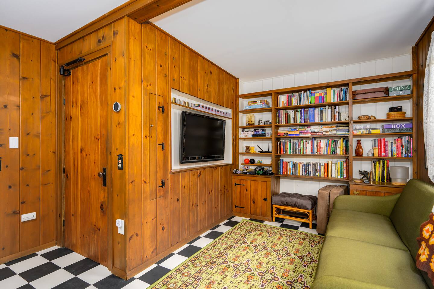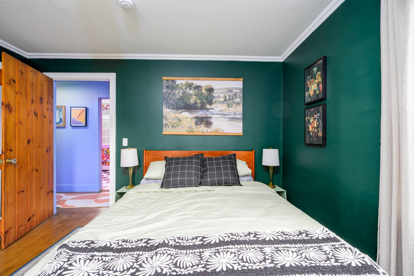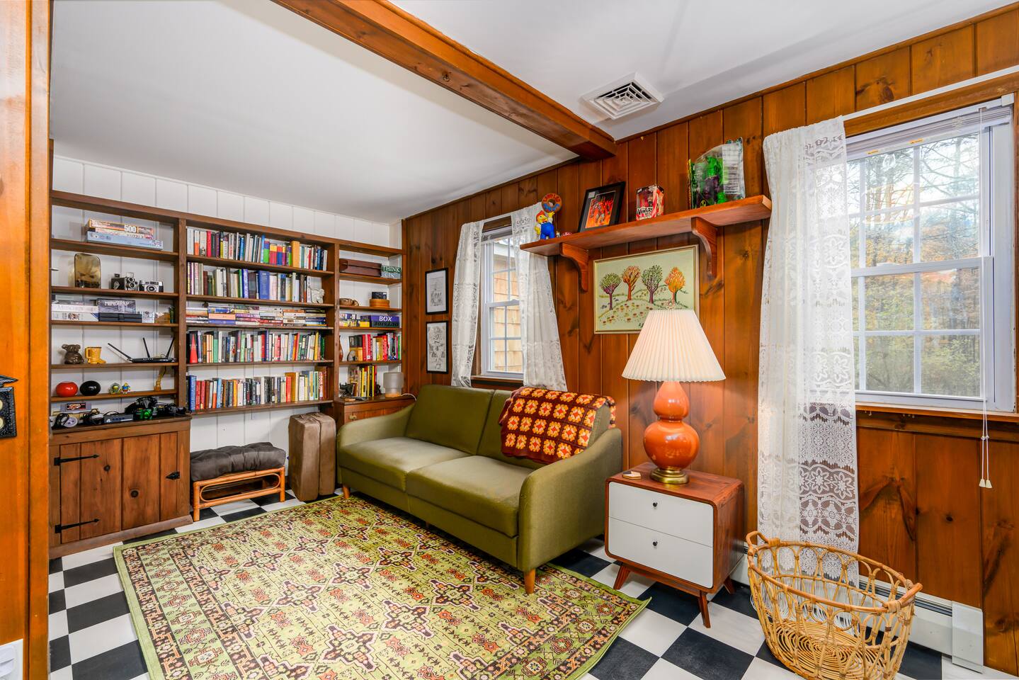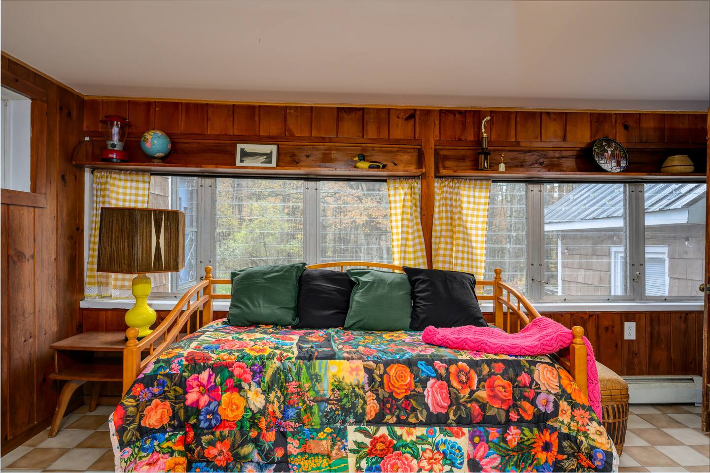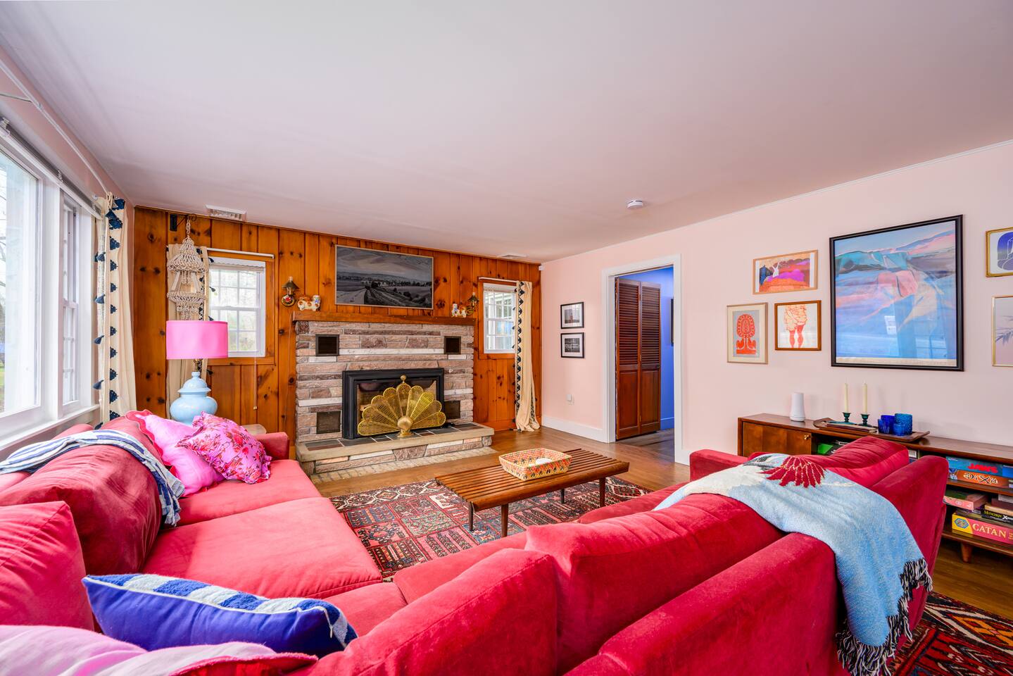 The space Inside, you’ll find a fun, quirky, and colorful space designed by the artist owner, blending vintage charm with modern comforts. Cozy up by the propane fireplace, cook in the fully stocked kitchen, or enjoy games, books, and high-speed Wi-Fi for relaxing indoor days. Step outside and make the most of your lakeside retreat: Paddle the lake with guest kayaks Gather around the lakeside fire pit Savor meals on the BBQ grill and outdoor seating Take in sunsets over the water in total privacy Other Highlights: Central A/C & washer/dryer Pet-friendly Family and group-friendly Peaceful, remote Adirondack setting Whether you’re looking for a family adventure, a romantic getaway, or a peaceful retreat with friends, this cottage is all about lakeside living at its best. From sunrise coffees on the shore to starlit evenings by the fire, this is the ultimate private waterfront escape in the Adirondacks! Escape to the mountains and lake, see details below! ★☆ NEARBY ATTRACTIONS & LANDMARKS ☆★ .☛ 3.2 mi - Majestic Mountain Marina .☛ 3.6 mi - Sacandaga Lake Picnic Place .☛ 6.8 mi - Hadley Mountain Fire Observation Station .☛ 13.1 mi - Wayside Beach .☛ 17.8 mi - Tubby Tubes River Co .☛ 22.8 mi - Lapland Lake Nordic Vacation Center .☛ 23.1 mi - Sky Zone Queensbury .☛ 24.2 mi - Fort William Henry .☛ 24.6 mi - Lake George .☛ 27.0 mi - Six Flags Great Escape ★☆ BEDROOM & BATHROOM ARRANGEMENT ☆★ 🛏️ BR1: 1 Queen Bed 🛏️ BR2: 1 Queen Bed 🛏️ BR3: 1 Twin Bunk Beds 🛋️ Extras: Fold-down twin couch in den + twin daybed in breezeway 🛁 Bathrooms: 1 full bath (bedroom wing), 1 half bath (off den near kitchen) ★☆ LIVING ROOM ☆★ Cozy up in the spacious living room featuring a 50" Smart TV (bring your own login), an indoor fireplace, and a collection of board games, books, and cards. Whether you're winding down with a movie or diving into a game night, this is your go-to hangout zone. ★☆ KITCHEN & DINING ☆★ Whip up anything from pancakes to pasta in your fully equipped kitchen, stocked with a Keurig, drip coffee maker, blender, air fryer, and all the essentials. The dining area offers a warm spot to gather and enjoy meals together—just bring your favorite recipes and you're set. ★☆ OUTDOOR SPACE ☆★ Step outside to enjoy your private slice of nature—fire up the gas grill, unwind on the deck, or toast marshmallows around the wood-burning fire pit. Kayak the lake, sway in the hammock, dine al fresco, or just let your pets roam the open, unfenced yard (please supervise them!).